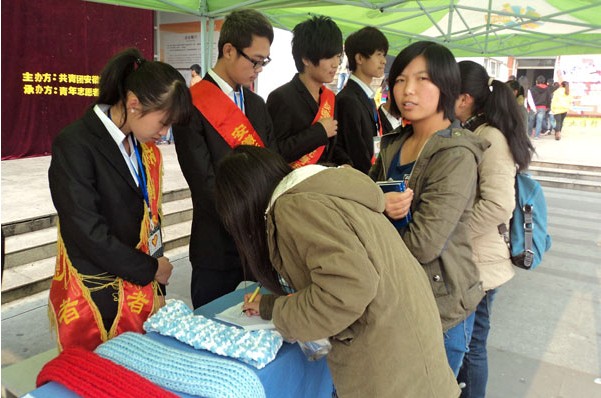格桑花工作站的志愿者们通过图片展、广播播送设点宣传了往年活动开展和西部儿童受赠情况,并安排专门人员现场教授围脖编织方法。过往师生纷纷登记报名,主动加入志愿行列,更有同学把早已织好的围脖捐出。现场的气氛非常活跃。