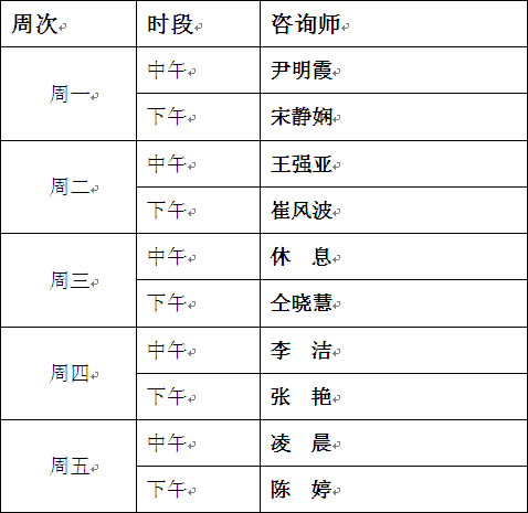 咨询时间:每周一至周五中午13:00~15:00;下午15:30~17:30