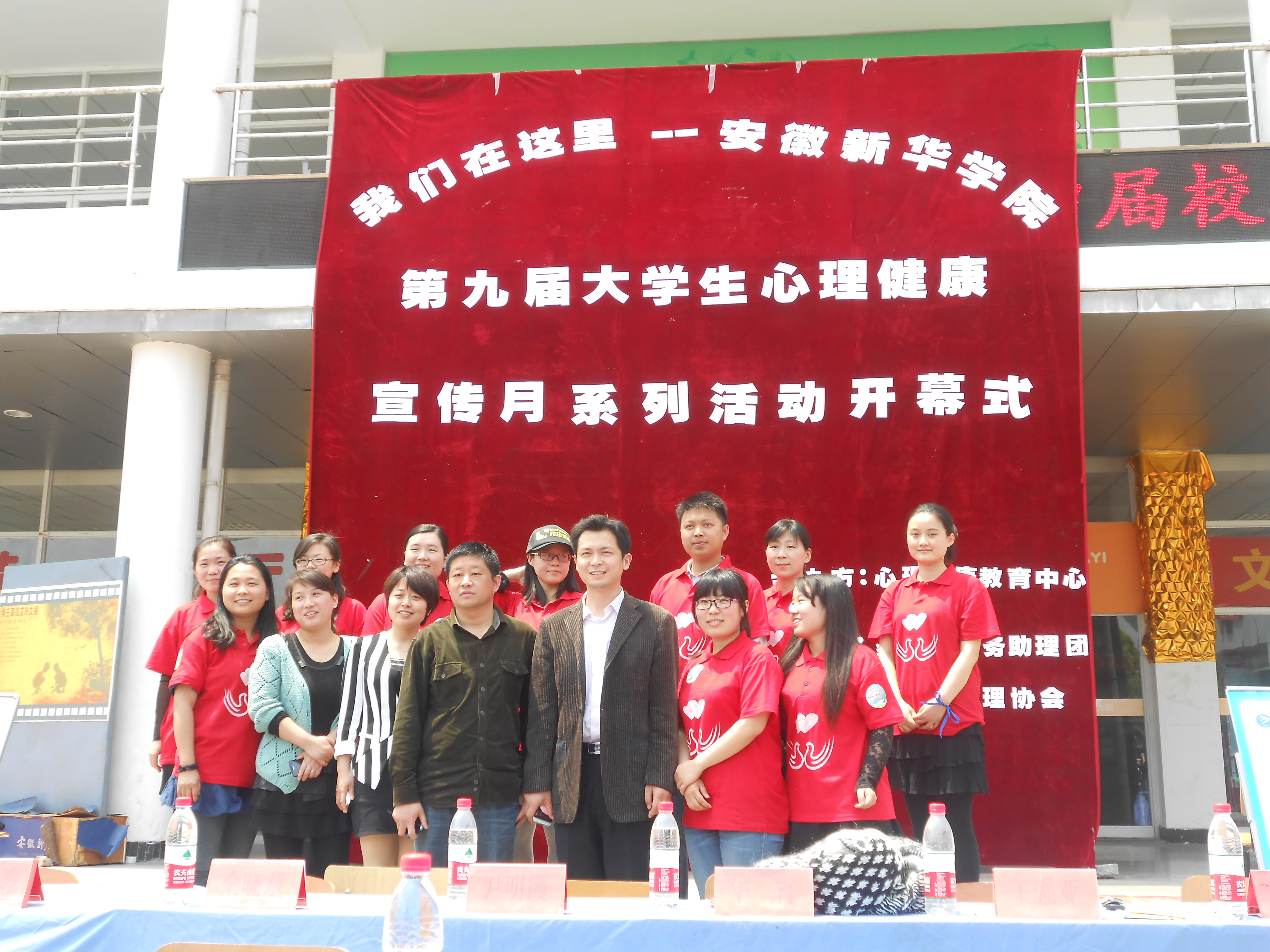 为了增强在校大学生心理健康意识,促进大学生健康成长和全面发展,营造和谐温暖的校园氛围。4月29日中午,以“我们在这里”为主题的安徽新华学院第九届大学生心理健康宣传月系列活动开幕式在翰林广场举行。安徽新华学院学生处处长、校团委书记朱兆健,药学院行政副院长王飞,全体专职心理老师,各二级学院辅导员代表及学生代表出席开幕式。本次开幕式由大学生心理健康教育中心主办,药学院院务助理团和大学生心理协会承办。