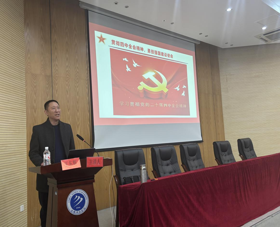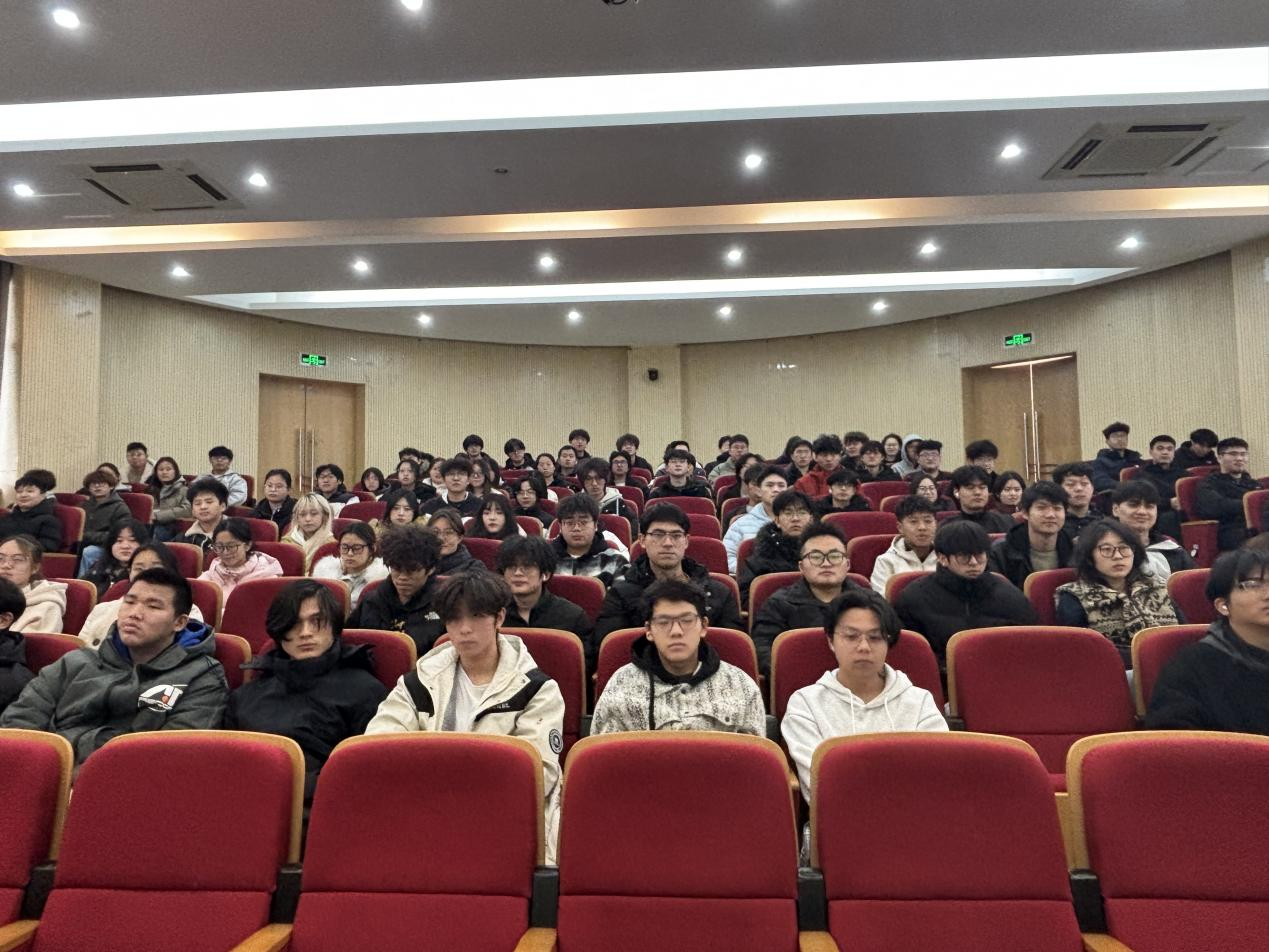 本网讯(通讯员:王轲)为进一步深入贯彻学习中国共产党第二十届四中全会精神,着力增强大学生青春报国意识,普及国防知识,激发青年学子参军热情,我校于12月25日在学术报告厅举办国防教育讲座。本次活动特别邀请了蚌埠工商学院党委学生工作部部长、人民武装部部长王东辉作主题为《热血青春献军营——大学生报国一席谈》国防教育宣讲,参与讲座的还有学生处处长芮萍、学生处相关老师、各二级学院140余名学生代表。